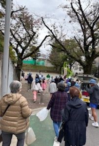 主に落ち葉でしたが、側溝の中の落ち葉にも気づいて、雨が降ったら詰まるよね~、と言いながら丁寧にとっていました。ビニールごみなどは、分別して、少ない時間でしたが、集中して40人近くで掃除をして、こんなに取れたと袋を見せてくれたり、素直な生徒たちと交流できました。