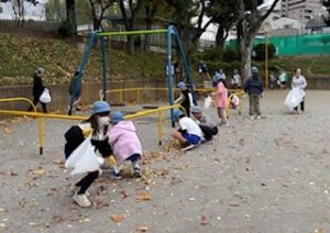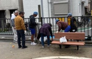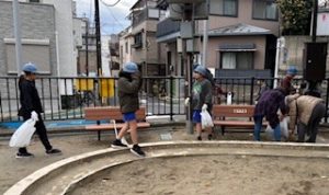 宮元町会は原会長、松井副会長、子安クラブ河野会長、子安クラブ会員の方々総勢8名で参加して、5年生と板二公園を清掃しました。