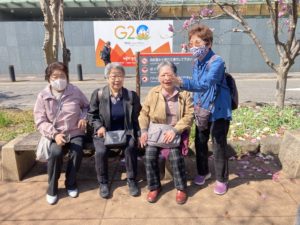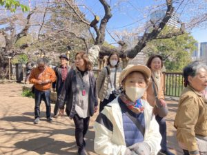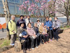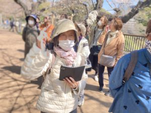 しながら、汗ばむ陽気の中のんびり散歩中には5・6部咲の木もあり、皆さん写真を撮りながら楽しんでいました。